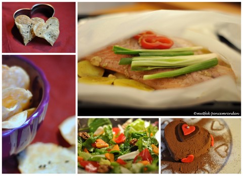 Yemeğimiz hafif olsun tatlıya yer kalsın diyenler için bu menüyü hazırladım, Dip sos eşliğinde Yukfa Kalpler, Karışık Salata, Kağıtta Somon Fırında ve finalde Kestane Pastası…