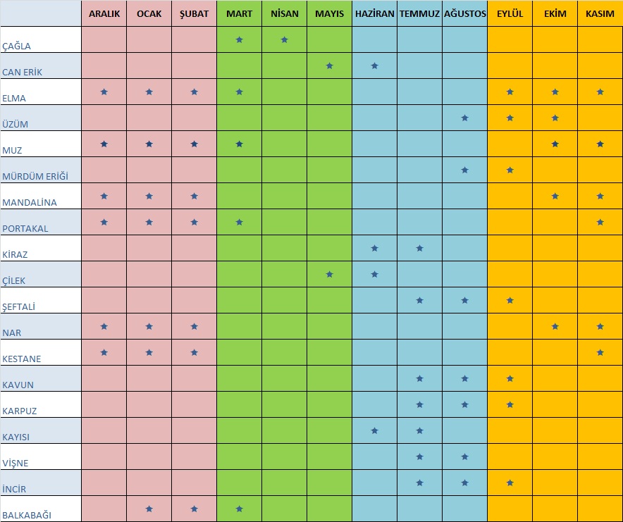 Yine bilgisayarınıza indirip saklamak isterseniz bu linkten ulaşabilirsiniz : SEBZE MEYVE TAKVİMİ (MEYVELER)