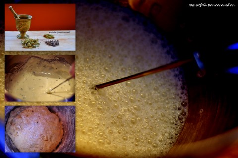 Önceden hazırladığınız dövülmüş kakuleleri* cardamum maya ile çırpılmış süte karıştırıyoruz. Bir tutam tuz mesela çay kaşığının ucu kadar yeterli tam da bu sırada ekleniyor. Bu karışıma şekeri ekleyip yine bir müddet çırpıyoruz arzu ederseniz hamuru rahatlıkla elle de tutabilirsiniz, ben şimdiye kadar hep öyle yaptım çünkü öğrenirken Finlandiya’da hiç bir alet edevatım yoktu doğrusu ardından soğumuş olan yağ ve tabii ki çok yavaş bir şekilde un… A tabii unu önceden bir iki kere elekten geçirmeyi ihmal etmeyelim.