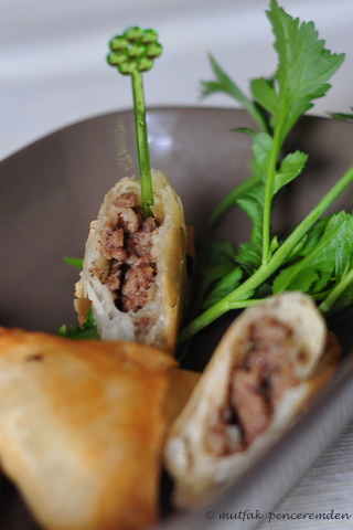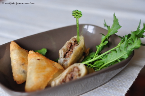 Kıymalı muska böreği ve cacık oldukça güzel görünüyor. Cacık sarmısaksız olmaz ama hiç sirke eklememiştim bu zaman kadar. Ellerinize sağlık.