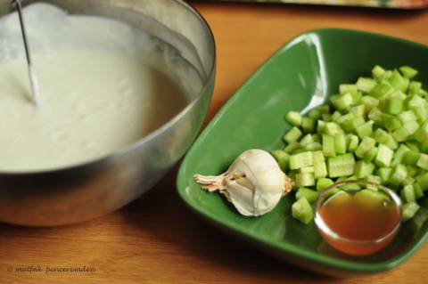 Ama ben anneannemi anmışken bu böreğin yanına bir de onun usulüyle  cacık yapmak isterim.