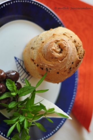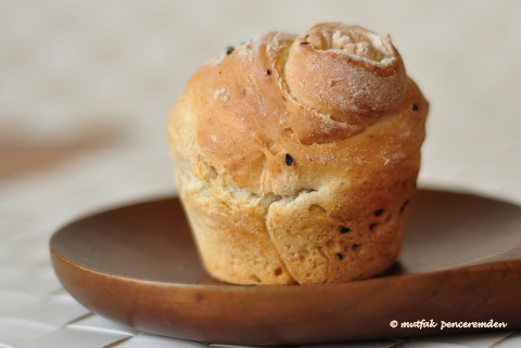 Bir keresinde o yine “pulla” yaparken ben de bir köşede benzer bir hamuru tuzlu olarak yapmaya koyuldum. O mayaladığı hamura tereyağı koydu ben zeytinyağı koydum. O aralara tarçın ve şeker serpti ben pul biber, anason ve haşhaş serpmeyi denedim ve çok hafif bir tuzlu kahvaltı çöreği elde ettim. Biraz açmayı andıran ama çok az yağlı ve oldukça da lezzetli bu hamura gül şekli vererek muffin kaplarında pişirdim. Ortaya çıkan sonuç hepimizi mutlu etti. İlk yaptığım gün fırından çıkan mis gibi kokular apartmanı sardı ve kapıyı çalan herkese bir muffin ve yanında peynir ikram edildi. Yapması çok kolay ama bütün mayalı hamurlar gibi biraz süre gerekiyor. Bakalım siz nasıl bulacaksınız?