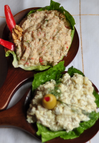 -Ezilmiş beyaz peyniri ve zeytinyağını, tuz, biberi ekleyerek servis tabağına alıyoruz.