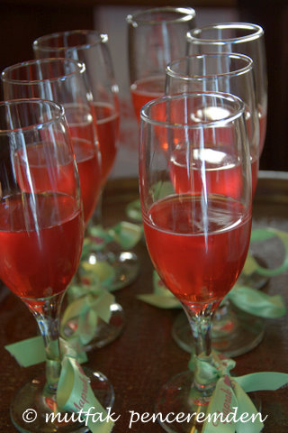 1 lt. nar suyu – şeker katılmamışını öneririm ama içkisinin daha tatlı olmasını arzu edenler şekersiz nar suyu yerine ½ lt. hazır nar şurubu da kullanabilirler.