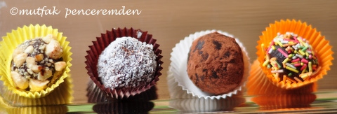 Öneri: Eğer davetinizde çocuklar da bulunacaksa onların çikolataya olan meraklarını göze alarak, yapacağınız truffle hamuruna kakaolu veya sade bisküvi kırıkları da ekleyebilirsiniz. Hem miktar çoğalacak hem de çocuklar için daha faydalı olacaktır. Ayrıca çocukların çikolatalarını minik renkli şeker kırıntılarına (hemen hemen bütün büyük marketlerde var) bularsanız daha da hoş görüneceklerdir.