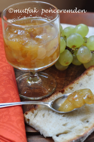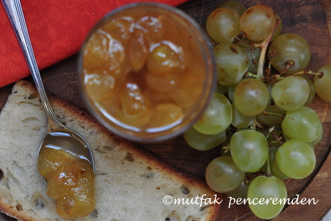 – Tencereye bir ölçü üzüm yarım ölçüden biraz fazla şeker koyarak reçel kıvamını alana kadar kaynatıyoruz. Bu arada üzümlerin şeklini bozmamaya gayret ediyoruz.