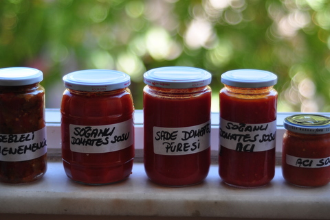 -Ben ilk önce kavanozlarımı kaynar su içinde bekletip sonra da kuruluyorum. Her yıl yeni kavanoz kapağı satın alıyorum ki kavanozlarım hava almasın ve domateslerim bozulmasın.