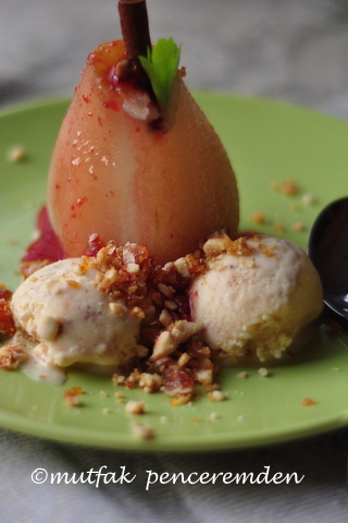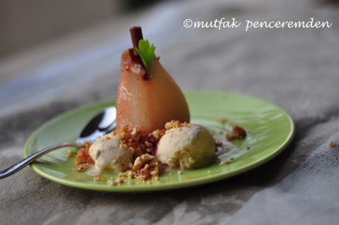 Ben bugün size ev yapımı tarçınlı dondurma ile sunduğum armut tatlımı anlatacağım. Tabii ki dondurmanın tarçınlı olması, tarçının elma ve armutla çok iyi arkadaş olmasındandır. Yoksa pek tabiidir ki hazır alacağınız vanilyalı veya sade kaymak dondurma da bu tatlıyı tamamlayabilir.