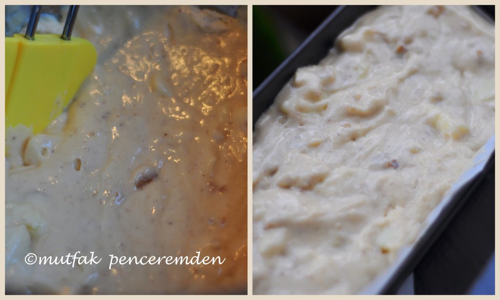 -Sırayla yoğurt, sıvı yağ, ceviz, tarçın ve elmayı ekliyoruz.