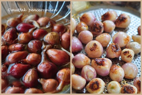 *Arpacık soğanını kolayca ayıklamak için bir kase ılık su içinde bir süre bekletmenizi ve suyun içinde ayıklamanızı öneririm. Bu şekilde hem kabukları çabuk ayrılacak hem de gözleriniz yanmayacak.