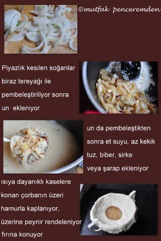 meslegın stajını yapar iken ustam bu çorbanın yapılışını sadece bana göstermişti.yapılırken biraz burun kıvırmıştım içimden bu ne ya diye.ama içince….ohh yok boyle bir sey :)) not:rokfor iyi gider aroması daha uyumlu kanımca.tarıfı verenede elıne ve emegıne saglık.