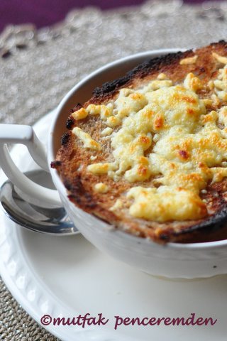 Eğer ısıya  dayanıklı kaplarınız yoksa  o zaman çorbayı kaselere boşalttıktan sonra üzerine, önceden ızgarada kızarttığınız peynirli ekmekleri koyup servis yapabilirsiniz.