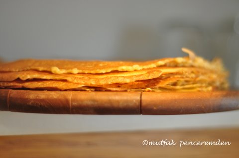 – Krepleri piştikçe bir tabağa üst üste diziyoruz.