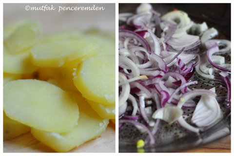 -Kabuklarını soyduğumuz patatesleri yaklaşık ½ cm. kalınlığında halkalar halinde kesiyoruz.