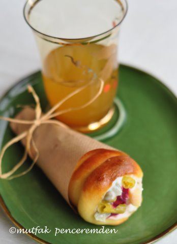 Üzerlerine sürmek için ayrıca 1 yumurtanın sarısı ve 2 kaşık sütü beraber çırpıyoruz.