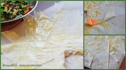 1 ½ paket hazır kesilmiş üçgen yufka veya 4 yufkacı yufkası