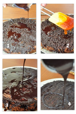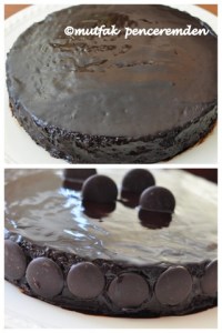-En sonunda glasuru hazırlayıp pastanın üzerine döküyoruz. Pastamızın sosu iyice donduğunda matlaşacak ve orijinal görüntüsünü alacak.