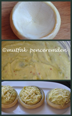 Bu arada patatesleri kabuğuyla ve bezelyeleri de ayrı bir yerde haşlıyoruz. Ben bunu düdüklüde, altta patates üstte sepette bezelyeyi haşlıyorum. Sonra kabuğu soyulan patatesleri bezelyeler ve sütle beraber ezip püre haline getiriyoruz. Yumurtayı ve tereyağını katıp püreyi pişiriyoruz. İçine kıyılmış 4 kaşık kaşar peynirini, dereotu, tuz ve karabiberi ekliyoruz.