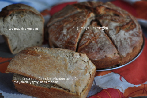 ( Ekmeğiniz için kullanacağınız unu da iyi seçmeniz gerekiyor. İstanbul ‘da Halk Ekmeğin tam buğday ununu önerebilirim. Ancak lütfen içinde katkı maddesi olan hazır ekmek karışımlarına rağbet etmeyiniz. Satın alacağınız birkaç çeşit unu evde kendiniz karıştırabilirsiniz. Benim kullandığım unlar Bayramiç Mustafa Alper’den ve Nazilli İpekhanım Çiftliği’nden geliyor. )