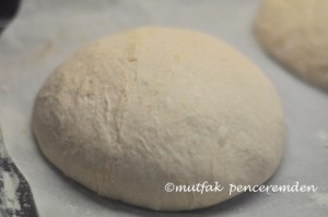 – Hamurumuzu ister bütün olarak çukur bir kap içinde,  istersek somunlar  halinde  bir yağlı kağıt üzerinde, üzerine nemli bir mutfak bezi örtülü olarak en az *1 ½ saat, hamur ta ki iki misli olana kadar mayalandırıyoruz.