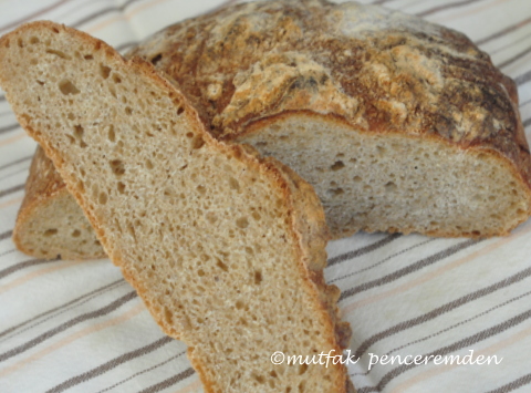 Aslında bu kadar söz söyleyene kadar kendi ekmeğinizi kendiniz yapınız desem de olurdu değil mi? Serde azıcık gevezelik olunca olmuyor işte… Size, zaman zaman yaptığım ekmeklerin tariflerini vermiştim, ancak insan yapa yapa deneyim kazanıyor ve daha öncekilerden daha iyi sonuç alınca da bunu paylaşmak istiyor.Artık  ben de  ekmeklerimi kalıpta veya tencerede değil de çeşitli boylarda somunlar halinde pişiriyorum. Bugün size yine en kolayından, neredeyse artık gözü kapalı yapabildiğim instant toz mayalı  tam buğday somun ekmeği tarifini vereceğim. Zaten, evde daha önceden hazırladığım ekşi mayayı kullanarak yaptığım ekmeğin tarifini , ekşi maya ve *ön mayaya ait  bilgileri“https://mutfakpenceremden.com/2012/01/05/eksi-maya-ve-e…ekmegi-tarifim/ ‎”de bulabilirsiniz. i Nohut mayalı ekmeğim ve içine çeşitli katkıların olduğu  değişik ekmeklerim ise yolda…