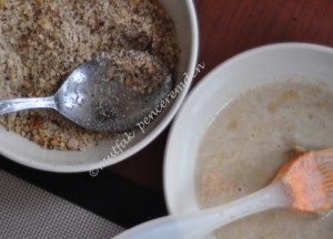 – Cevizi ince çekiyoruz ve şekerle karıştırıyoruz.