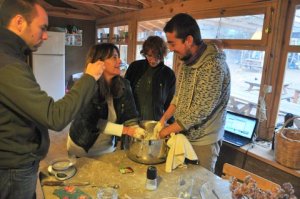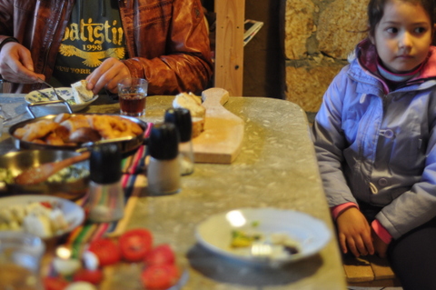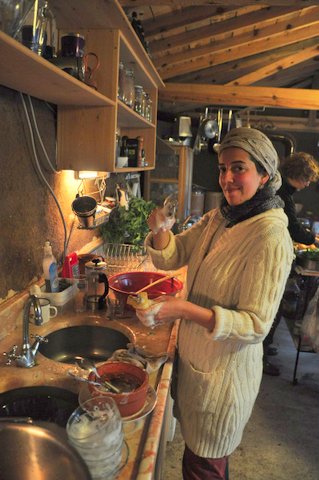 Alışveriş yapıldı, kolilerhazırlandı, bu da gerekir, şu da lazım olur, ay kızımız bunu da sever, şunu özler derken araba tepesine kadar yüklendi. Kalan son boşlukları da Bayramiç pazarından aldıklarımızla doldurduktan sonra Burcu’nun şu sıra yerleştiği Yeniköy’e yollandık. Bir kaç gündür yağan şiddetli yağmurun ardından iyice bozulan köy yolunun sonuna vardığımızda ayağında şalvarı başında çemberiyle Burcu kollarını açmış bizi bekliyordu ama bahçeden içeri girebilmek için önce üzerimize atlayıp bizi tanımaya çalışan Duman’dan izin almamız gerekiyordu. Duygusal anlara pek zaman kalmadığını hemen söylemem gerekiyor, çünkü beslenmeyi bekleyen keçiler, tavuklar, kazlar ve ördekler, köpek ve kediler vardı. Bayramı tatilini değerlendirmek, aynı zamanda köy yaşamını deneyimlemek için Yeniköy’e gelen misafirlerle de ilgilenmek, en azından onlara neyin nerede olduğunu göstermek gerekiyordu. Yerleşkenin ortak yaşam alanı olan mutfakta bizi imece için gelmiş olan gönüllüler karşıladı. Hepsi çok sıcak kanlı gençlerdi. Aralarında küçücük kız çocukarını beraber getirmiş bir çiftin de olduğunu eklemeliyim. Hemen kaynaşıverdik. Evden hazırlayıp getirdiğim patlıcanlı poğaçalar demlediğimiz çayın yanında neşeyle yendi. Burcu hemen o gün için yapılacakları kısaca, ancak suyun nasıl ekonomik kullanılması gerektiğini ise uzun uzun anlattıktan sonra gönüllü arkadaşlarla işbölümü yaptık. Ben meraklı olanlarla beraber ekmek yapmaya giriştim. İki arkadaş ise akşam yemeğine pişecek ıspanağı yıkamak için bahçeye çıktılar. Beyler mutfaktaki ateşi yapmak için seferber oldular ama odunlar o kadar ıslaktı ki saatler sonunda minicik bir ateşimiz olabildi. Yine de ortamın enerjisi o kadar yüksekti ki ısınmak için ateşe gerek kalmadı. Hep birlikte yoğurup mayaladığımız ekmeğin tadı bir başka güzel oldu. Ispanağı bol soğanla pişirip taze bulgur ekledik.Bol sarmısaklı yoğurtla karıştırdık. Elle kopartılarak yapılan kıvırcık salata ve Bayramiç’in enfes kuru soğanı ile pişirdiğim soğan çorbası da akşam yemeğimizi tamamladı.Bayram tatlımızsa İstanbul’ dan getirdiğim tahinli kuru baklavaydı.Bu arada hiç bir şeyi ziyan etmemeye çalıştık. Çöpleri ayrıştırdık. Sebze çöpleri *”kompost” a gitti. Hamur mayaladığımız tenceredeki kalıntılar kümes hayvanlarına yem oldu. Ekmek tepsisine yağlı kağıt koyamadığımız için bolca un serpmiştik. Ekmeğimiz pişerken tepside pembeleşmiş olan bu unları bir kavanoza doldurduk ve ertesi gün yaptığımız çorbaya kattık.İşte orada hayat böyleydi. Kimi keçileri güttü, kimi tarlaya gitti,kimi yemek yaptı, kimi de bulaşık yıkadı. Herkese göre iş vardı ve hep olacak.