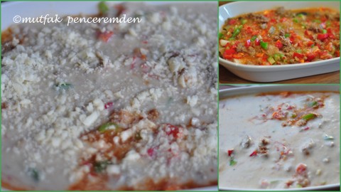 En sonunda da içine bir yumurta ve peynirimizin yarısını kattığımız beşamel sosumuzu ilave ediyoruz. Kalan peyniri de üzerine serptikten sonra 40 dakika kadar 180 derecelik fırında pişiriyoruz.