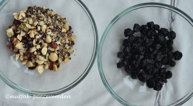 1 çay fincanından biraz az kurutulmuş mavi yaban mersini/ bunun yerine doğal kurutulmuş kuru üzüm de kullanılabilir