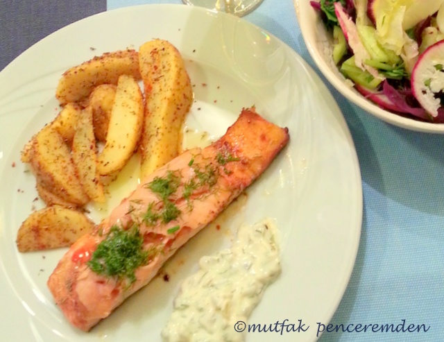 Uzmanlar diyorlar ki, balığın hangisi olursa olsun bize zorla yedirilmeye çalışılan şu zavallı gelişmemiş tavuklardan bin kat daha masummuş. Masumiyet bir yana balığın faydaları saymakla bitmez. Bizim mutfakta her hafta bir veya iki kez balık pişer. Durum böyle olunca da sık sık değişik tarifler uygulanır. Bugün vereceğim tarif ise kız kardeşimin eşinin elinden çıktı. Kendisi mutfağa girdi mi çoğu zaman muhteşem lezzetler yakalar. Bu tarif de onlardan biri. Kendi başına fazla tadı olmayan somonu evirdi çevirdi, nefis bir yemek hazırladı, hem de salatası, mayonezli sosu ve garnitürü ile birlikte toplam 40 dakikada. Bakalım nasıl yapmış.