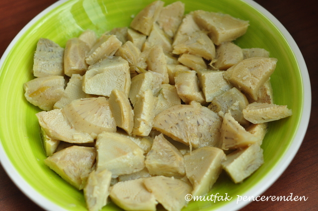 Pişen enginarları boyuna göre 4 e vaya 6 ya bölüyoruz.