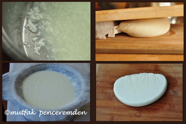 Tencerenin altını kapatıp biraz ılınmasını bekledim. Daha sonra temiz bir tülbentten süzdürdüm ve tülbentin ağzını iyice sıkarak yüksekçe bir yere astım. Bir saat kadar sonra askıdan aldım ve yassı bir şekil alması için iki kesme tahtası arasına yerleştirdim. Üzerine ağırlık koyduğum bu düzeneği buzdolabına kaldırdım. Yaklaşık 8 saat sonra peynirim kesilecek kıvama gelmişti.