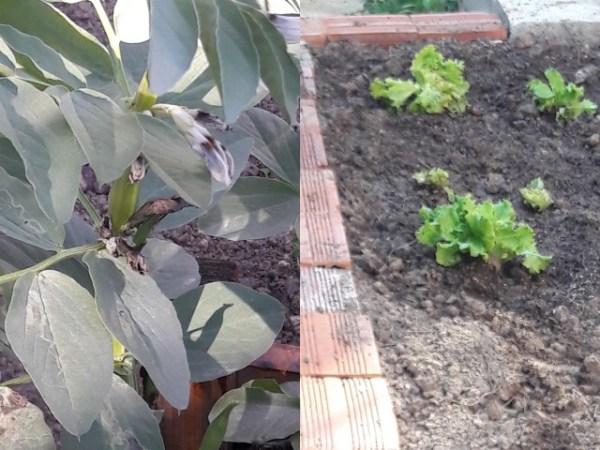 Bakla yaprakları salataya girdi. Hızla büyüyen baklalar aynı hızla toplanıyor. Kıvırcık salata ve marulların sadece yapraklarını kopartırsak köklerinden tekrar yapraklar büyüyor. İşte bunu da yeni öğrendik.