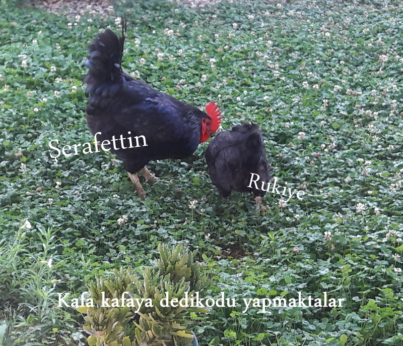 Ancak bahçemizi mutsuz etmek için yarışa giren başka şeyler de oldu bu yaz. Bir sabah uyandık baktık ki ne görelim; yoncalarımızın tümü dantel dantel olmuşlar. Hemen bir bilene danıştık tabii… Vah vah, bahçenize çekirge sürüsü girmiş, cevabını aldık. Eeeee! Yani? N’olcak şimdi? İlaçlama lazım ama, yararı var mı bilen yok. Biliyorsunuz, hep yazıyorum; bizim amacımız temiz bahçe temiz toprak. İlaçsız yaşam. Sanal ortamda bizim gibi düşünen guruplara danıştık. Çare kedi ve tavuk beslemek dediler. Bizim zaten bir Zeyna’mız var. (Kardeşimin güçlü kuvvetli güzel kedisi.) Kendisi biraz ye iç, yan gel yat sever ama ne de olsa kedi işte … Ama bir kedi koca bahçeyle nasıl baş etsin ki?Kümes kurun, dediler. Doğrusu ben hiç de istekli değildim ama kardeşimle eşinin çabalarına itiraz etmedim. Kümese uygun tek yer onların yatak odalarının yakınındaki bir köşeydi ve enişte bey sıkı bir çalışmayla süper bir kümes yapıverdi. Eksik olmasınlar, sevgili Şadan Tamer Güvenir çifti kümeslerinden özenle seçtikleri bir horoz ve bir tavuğu kapıp geldiler. Aman! Dediler, tavuğumuz henüz gencecik bir kızdır, önce yerine alışsın, biraz büyüsün serpilsin sonra yumurtlamaya başlar. Ama gelin görün ki bizim Şerafettin ile Rukiye pek yaramaz çıktılar; üç güne kalmadan yumurtalar gelmeye başladı… Önceleri kümesten çıkmaya pek yanaşmadılarsa da kardeşim birazcık aç bırakınca bahçede dolanıp kurttu böcekti ayıklamaya başladılar ama ah şu çekirgeler yok mu? Bunlara bir iki değil on tavuk bile yetmez anlaşılan.