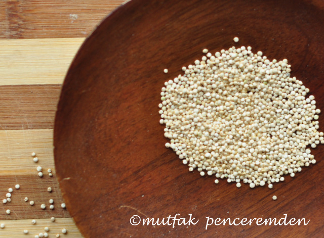 Önce yarım bardak kinoayı iyice yıkayıp bir süre soğuk suda beklettim. 15 dakika kadar. Sonra süzüp bir bardak suyla suyunu çekene kadar, kısık ateşte haşladım. Elde ettiğim bir tür kinoa lapasıydı. Bu arada ıspanağımı yıkayıp ince doğradım ve ince doğranmış soğanla suyunu çekecek kadar kavurdum. Bu iş için çok çok az yağ kullandım.
