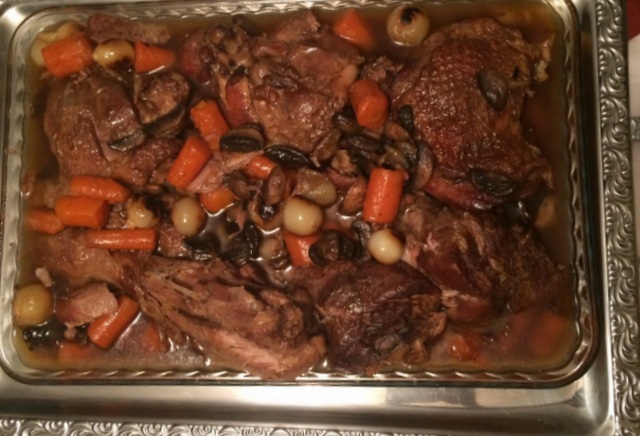 Fotoğrafını gördüğünüz,Sarhoş hindi yemeği kalabalık bir sofra için haxırlandı. Üç hindi butundan altı parça çıktı ve bu miktar yaklaşık on kişiyi doyurdu.