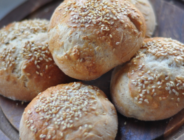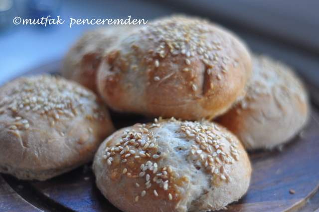 Yıldızlılar dışındaki bütün malzemeyi karıştırdıktan sonra mayalanmaya bırakıyorum. Yaklaşık bir saat sonra hamurumdan istediğim boyutta yuvarlak sandviçler yapıyorum. Kabaracaklarını hesaplayıp aralıklı olarak yağlı kağıt üzerine yerleştiriyorum. Üzerlerini örttükten sonra 30 -40 dakika daha mayalanmalarını bekliyorum. Fırına sürmeden önce çırpılmış yumurta akı ve susamla süslüyorum.180 derece ön ısınmış fırında yaklaşık 35 dakika kadar pişiriyorum.