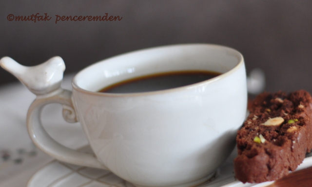 Bir süre önce fıstıklı ve bademlisinin tarifini vermiştim. Bugün de sıra geldi parça çikolatalısına.Akıllara zarar bir lezzet,inanılmaz kolay bir kahve yanı bisküvisi.Az laf çok iş diyelim ve mutfağa girelim.
