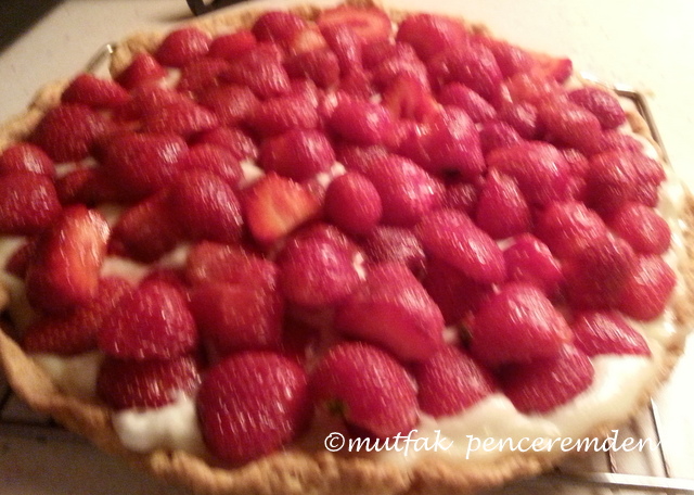 NOT:Bu tart hamurunda yumurta olduğu için diğerlerinden farklıdır. Ayrıca bazı tarifleirmdekinden biraz daha kalın olarak kullanıyorum çünkü üzerine krema ve meyve ve mereng gelince hamurun dirençli olması gerekiyor.