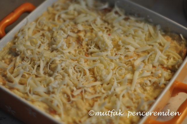1 su bardağı kadar da peynir rendesi ( beyaz,kaşar, dil,tulum evde ne peynir varsa ondan)
