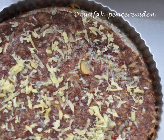 Köftemi 180 dereceye ısınmış fırında yaklaşık 35-40 dakika pişiriyorum. İlk yirmi dakikadan sonra üzerine bir miktar kaşar rendesi serpiyorum.