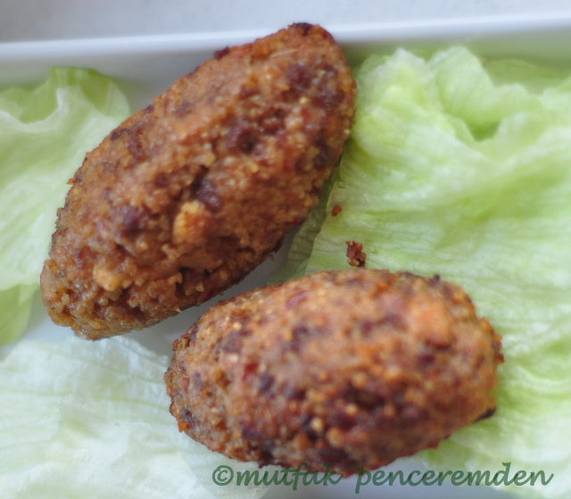 Bayılırım içli köfteye, hem kızarmışına hem de haşlamasına. İçli köftenin malzemesi tam olduktan sonra dayanamam, yerim de yerim. Gel gör ki evde yapılanlar dışında artık İstanbul’da doğru düzgün içli köfte yapan varsa bana da haber verin de gidip ben de yiyeyim. Eskiden öyle miydi ya. Kahraman Maraş Köftecisi vardı . Öyle bir köfte yapardı ki parmaklarınızı yerdiniz. Cevizi bol, eti bol.Evet efendim şimdi benim diyenler basıyor köftenin dış çeperine ya unu ya da bolca patatesi,içinde cevizi kıymayı ara dur. Kızmasın kimse ne yapayım. Bizim ailenin geleneksel yemeklerinden değil içli köfte ama eşimiz dostumuz ahbabımızın yöresel yemeklerinden olduğundan hem yemeyi hem yapmayı severim. Bir ara konu komşu bir araya gelir hep birlikte taneler, kızartır,afiyetle yerdik.Tabii ki mekik şeklini verip içini oyarak yapardık. Sonraları kızartma yapma sağlıklı yap şunu diye diye yaptığım köfte hamurunu pyrexe yayıp arasına kıyma içini üzerine tekrar hamurunu koyup fırında pişiridğim çok olmuştur.Gerçekten lezzet değişmiyor, yapması daha kolay.Ancak bu ara birdenbire kızarmış içli köfte canım çekti. Tam kıymamı kavurdum,içi hazır ettim, önemli bir telefonla herşeyi bırakıp çıkmam gerektirdi.Tabii işler aksadı.Uzun uzun mekikler açıp doldurmaya vakit kalmadı.Ne yaptım dersiniz ,işte şimdi size ne yaptığımı tarif edeceğim.