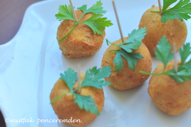 İyice süzdükten sonra çatalla eziyor içine tuz, karabiber ve peynirleri ekliyorum. Parmesan rende şeklinde dil peyniri de çok minicik küpler halinde olmalı. Hepsini karıştırıp köfte hamuru haline getiriyorum ve iri ceviz boyunda yuvarlıyorum. Daha sonra iyice çırpılmış yumurtaya ve galeta ununa bulayıp kızgın yağda pembeleşene kadar kızartıyorum.