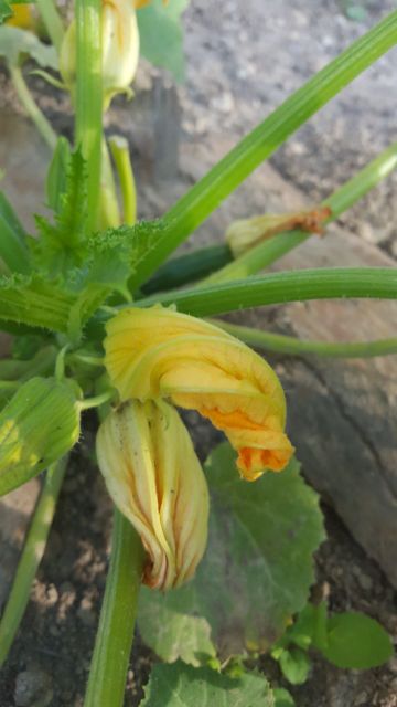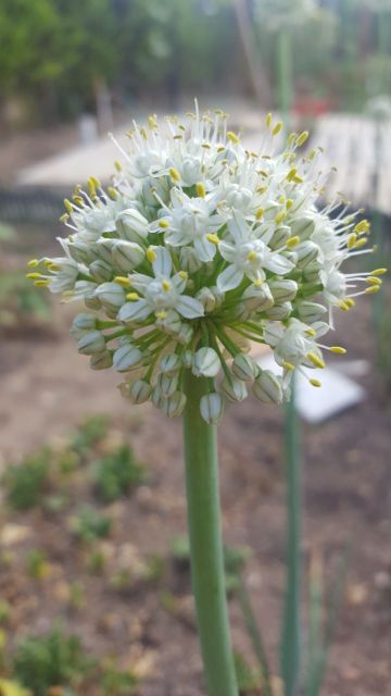 Kabak fideleri toprakla buluştu, ancak tohuma gitsin diye bırakılan brokoli ve lahanayla komşuluğundan memnun kendisi. Arkada yabani pırasalar toplanmayı bekliyor.