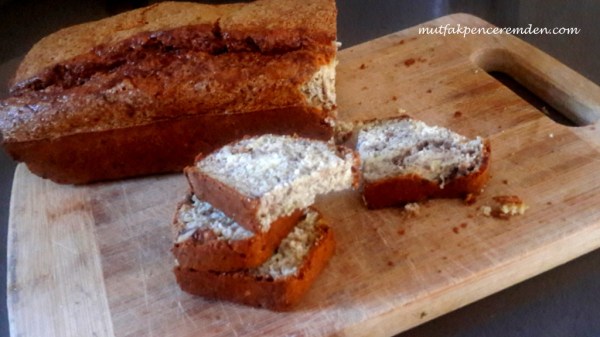 Aynen kek yapar gibi önce yumurtaları çırparak başlayıp sonra diğer malzemeyi ekleyerek hazırladığımız ekmeğimizi soğuk fırına atıyor ve sonra fırını 170 dereceye açıyoruz. On dakika kadar ekmeğin kabarmasını bekledikten sonra hemen üzerine bir tepsi sürüyoruz ki ekmeğimiz in üzeri hemen kızarmasın ki içi iyice pişebilsin. Yaklaşık 30 dakika sonra bu tepsiyi tekrara çıkartıyoruz ve ekmeğimizin içinin piştiğine emin olana kadar fırında tutuyoruz. Ekmeğimize temiz bir bıçak saplayarak pişip pişmediğini kontrol edebiliriz. Fırından çıkan ekmeği bir tel ızgara üzerinde iyice soğuttuktan sonra dilimliyoruz.